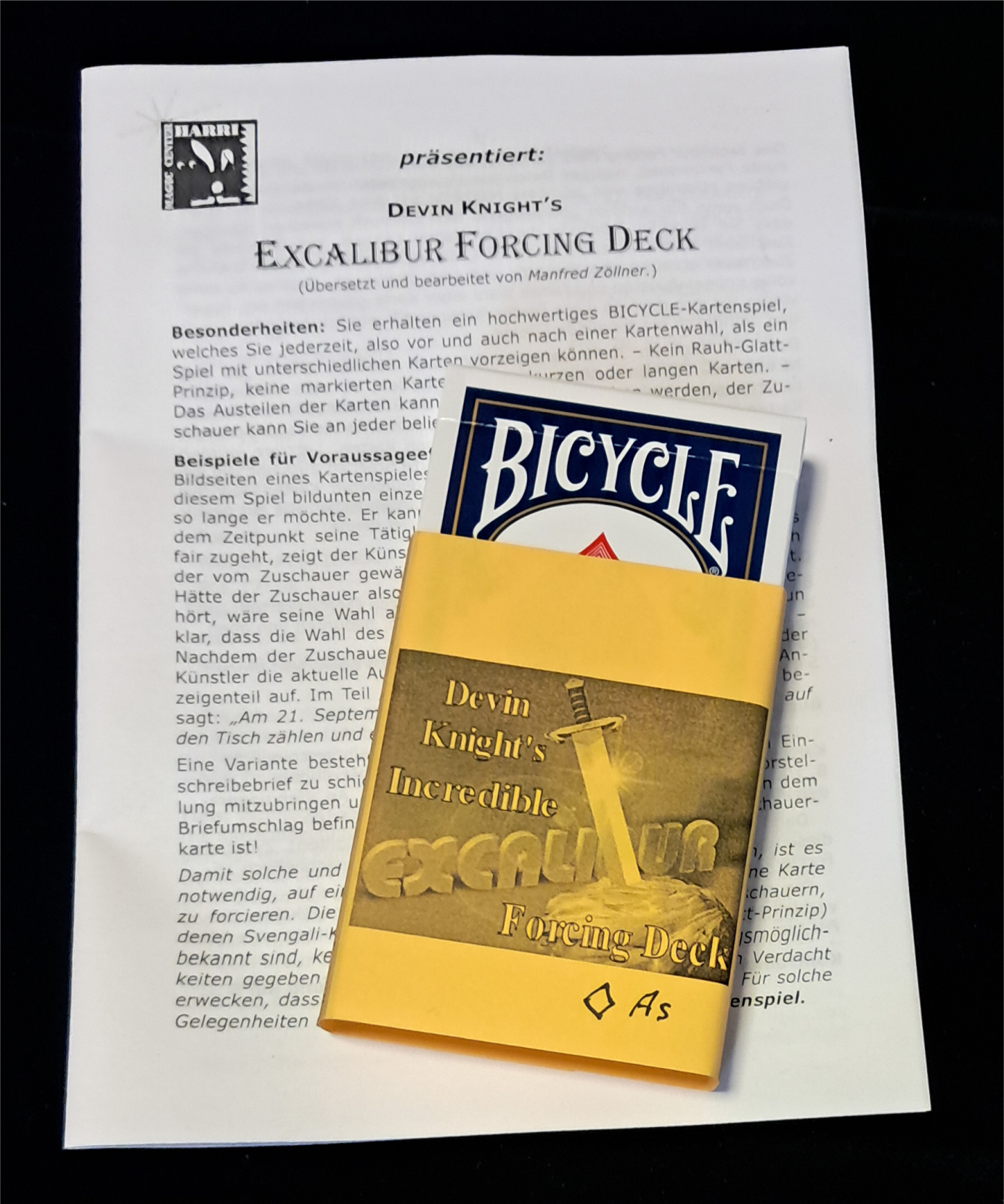 Unbestritten, dass es schnellere und leichtere Methoden gibt, um eine Karte zu forcieren. – Doch wenn Sie wirklich überzeugend den Eindruck erwecken möchten, dass Sie keinerlei Kontrolle darüber haben können, welche Karte ein Zuschauer auswählt, dann ist das "Excalibur Forcing Deck" der einzig richtige Weg.