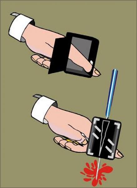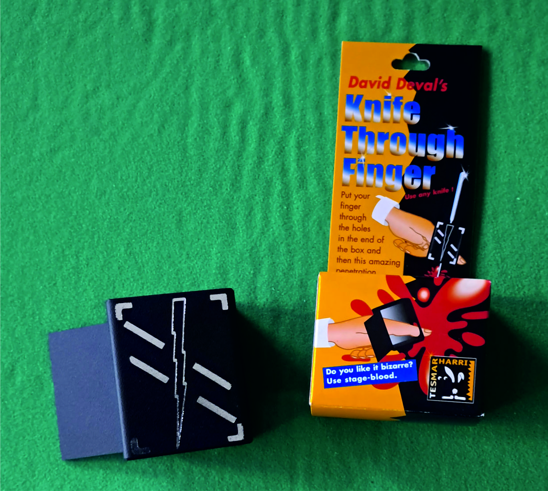 David DeVals Miniatur-Illusion: Ein Kästchen und ein Messer können genau untersucht werden. Dann stecken Sie Ihren Finger durch das Kästchen und durchbohren beides mit dem Messer.