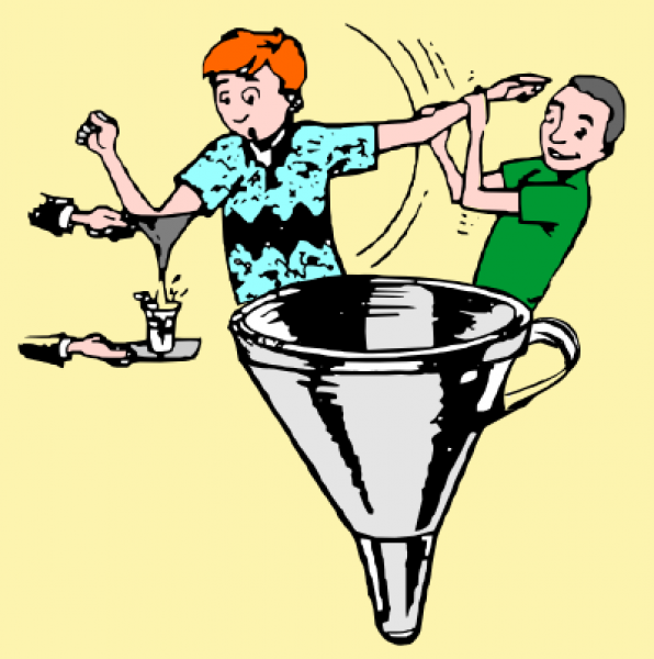Dieser Zaubertrichter ermöglicht es Ihnen, einen Zuschauer “anzuzapfen” und z.B. Milch oder Wasser aus seinem Ellenbogen zu “Pumpen”.