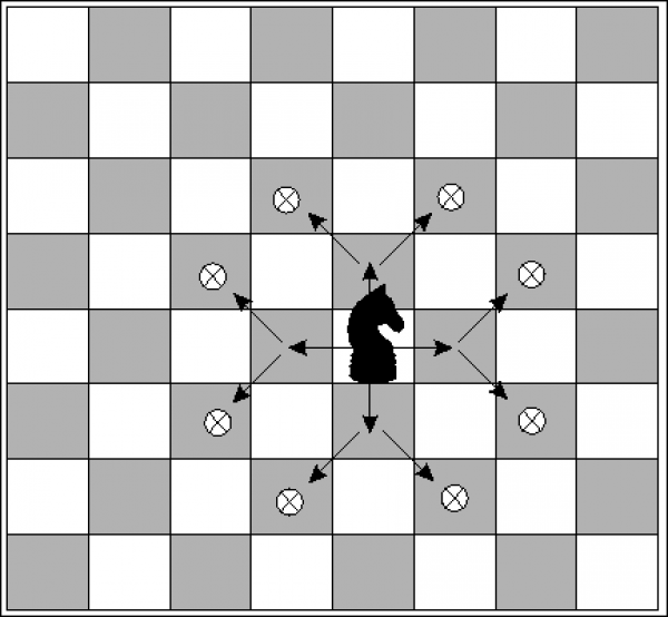 Sie nennen das nächste Feld, auf den der Springer gezogen werden soll. Und das nächste, und das nächste und das nächste... - Der Zuschauer kontrolliert die Legalität der Züge und streicht Feld für Feld durch. (Sie können das Ganze auch mit einer Flip-Chart, einem Proki-Schreiber oder einem Whiteboard im großen Kreis vorführen!) -
