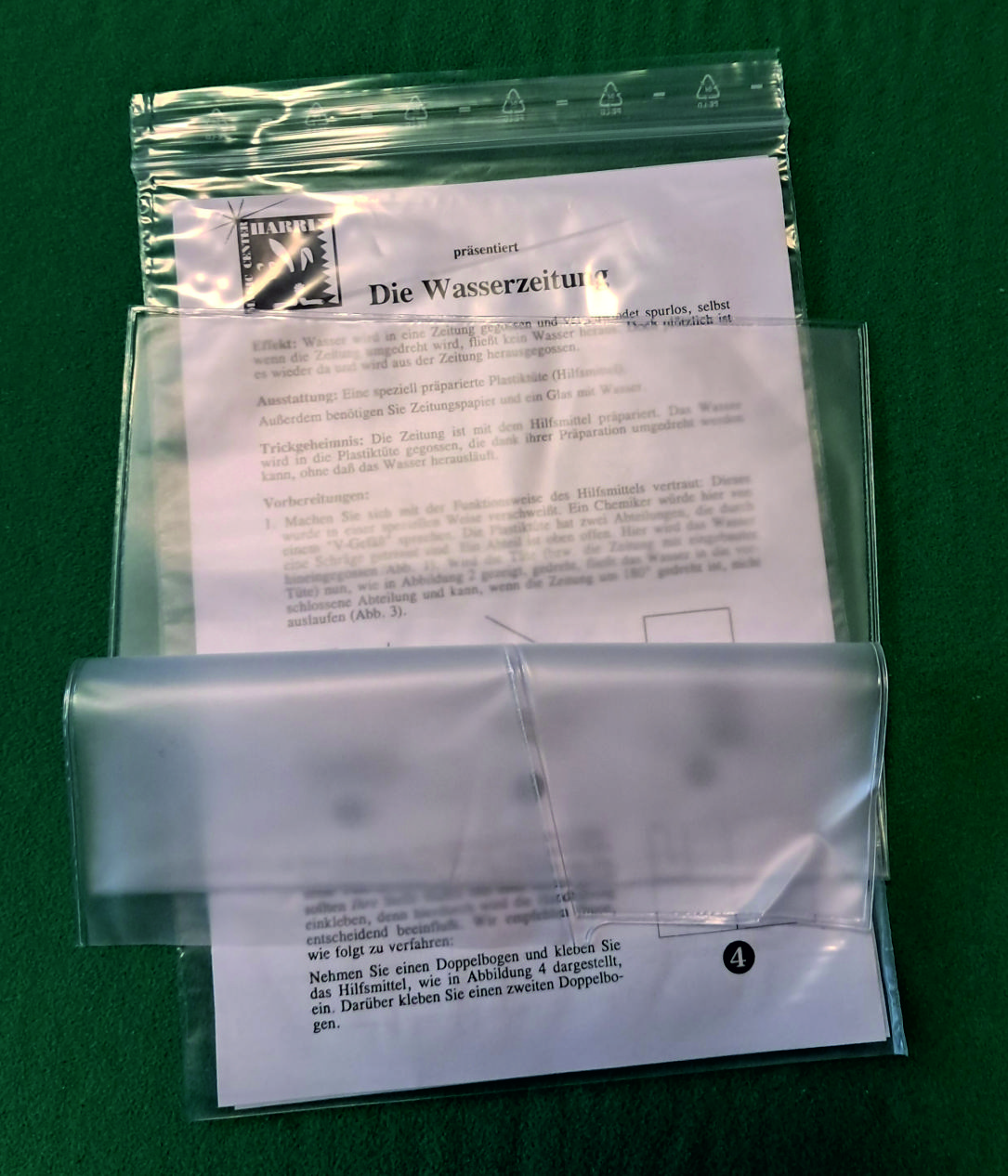 Eines der beliebtesten und erfolgreichsten Kunststücke: Wasser wird in eine Zeitung gegossen und verschwindet spurlos! - Doch dann ist es wieder da.