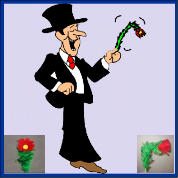 Dieser Gag gehört zum bewährten Repertoire der Comedy Zauberer.Die ca. 30 cm große Federblume knickt um und wendet sich ab, wenn ein Zuschauer daran riechen will