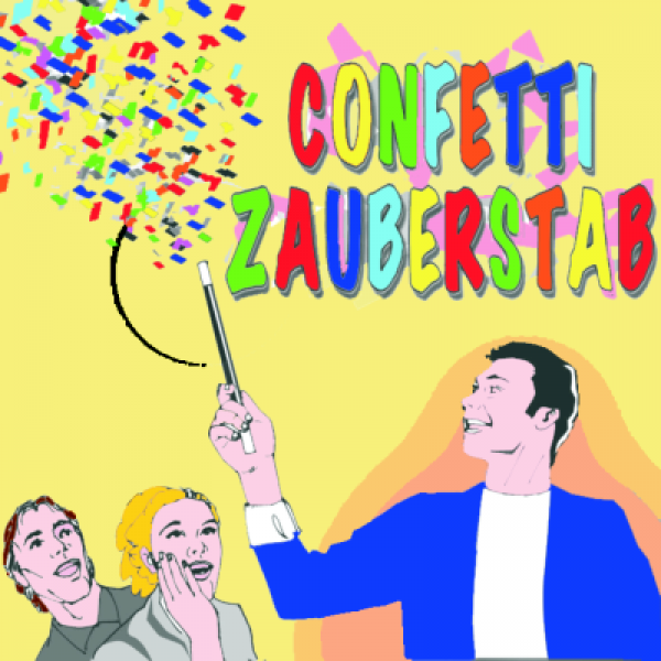 Dieser ermöglicht es Ihnen, mit einer einzigen schnellen Bewegung Konfetti-Streifen hoch in die Luft zu schleudern, woher sie als große bunt schwirrende Wolke auf die Bühne nieder gehen. Und das lässt sich sogleich noch einmal wiederholen.