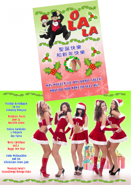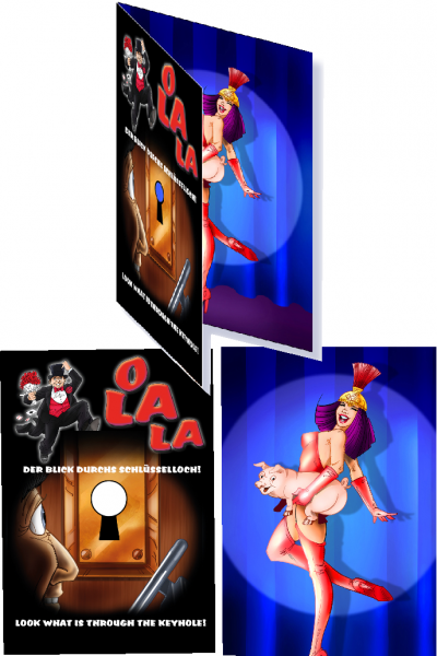 Klappkarten mit einem Guckloch, das den Betrachter zunächst in die Irre führt, doch wenn er die Karte aufklappt ...