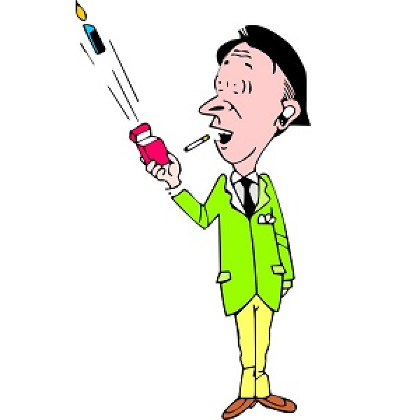 Sie holen Ihr Zigarettenpäckchen heraus und stecken sich einen der Glimmstängel zwischen die Lippen. Dann suchen Sie nach Ihrem Feuerzeug. Doch das finden Sie nicht. Irritiert gucken Sie umher - plötzlich springt es aus der Schachtel hoch in die Luft. Mit erstauntem Gesicht fangen Sie es auf und entzünden Ihre Zigarette.