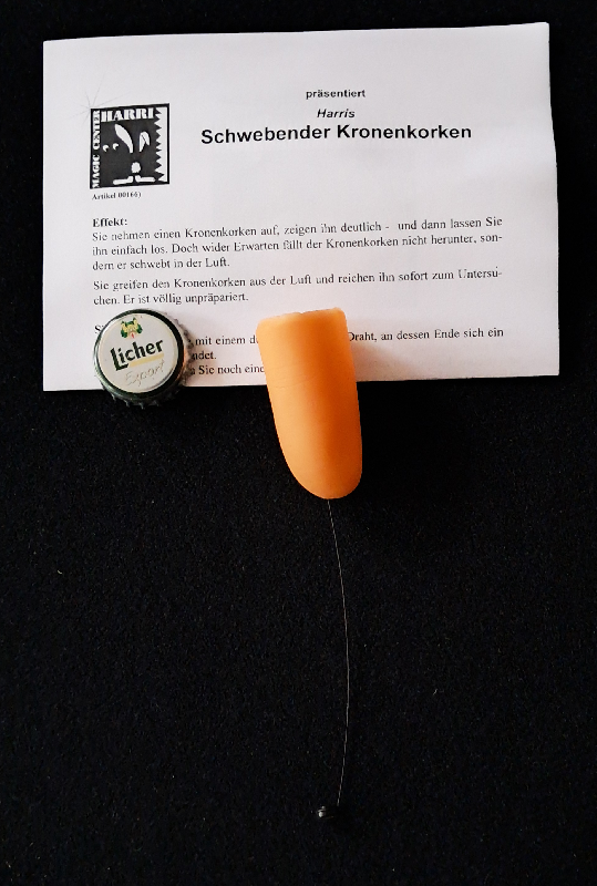 Doch wider Erwarten fällt der Kronenkorken nicht herunter, sondern er schwebt in der Luft.