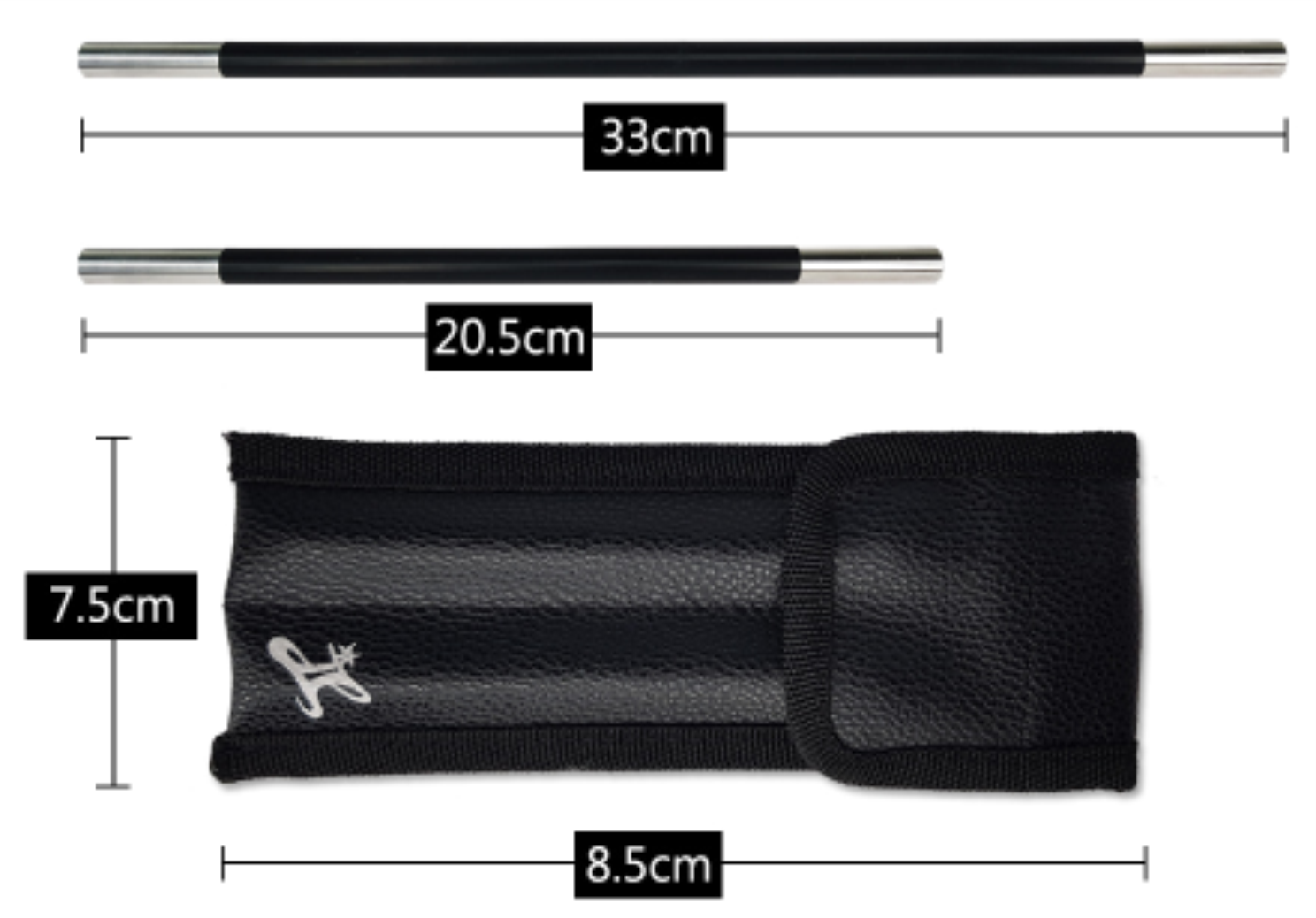 - Sehr anpassungsfähig; dieser Stab kann auf verschiedene Längen von 20 cm oder 33 cm gebracht werden.