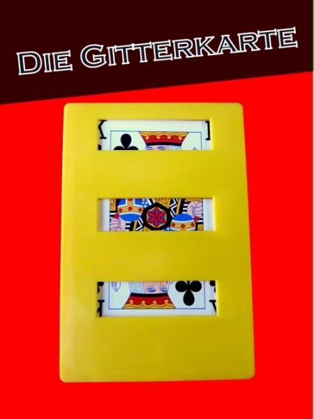 Sie geben diese Karte in einen Kunststoffrahmen mit Gitterfenster. Der Zuschauer sieht deutlich, dass die Karte hinter den Gittern festsitzt.