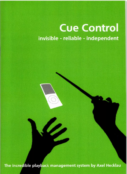 Cue control offers solution for this problem and makes it possible for solo artist to add more variety to their shows. Axel Hecklau's system uses no fancy specially made electronic devices. With some clever ideas, an mp3-player and a standard wireless system (maybe you have this items already at home) you are able to manage your cues during the show by yourself - Reliably, Independently, and Invisibly.