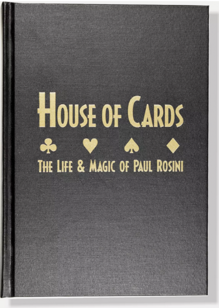 House of Cards by Chuck Romano is a unique and beautiful 320 page hardcover book with a gold-stamped cover. This book chronicles the fascinating life of Paul Rosini and explains much of the exceptional magic he performed during his career.