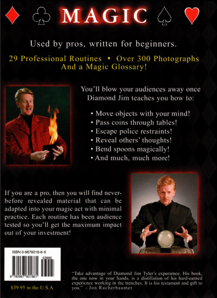 In the school of magic, I have no idea at what level, or in what category, you would place yourself. With that in mind, I have tried to create a book for every type of magician. With the descriptive text and numerous photos I have tried capture every nuance during each routine. In addition, each term that falls into the category of "magic jargon" has been bold-faced. These bold-faced words are defined in the glossary at the back of the book.
