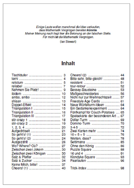 Wie in jedem Band dieser Reihe finden Sie auch hier eine Sammlung von mehr als 50 neuen semi-automatischen Tricks ("Selbstgängern") mit Spiel-, ESP- und anderen Motiv-Karten, viele davon in mehreren Versionen, die bis jetzt in deutscher Sprache noch nicht veröffentlicht worden sind.
