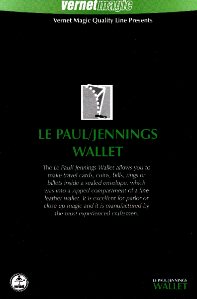 This genuine leather wallet has been designed so that a chosen card, ring, coin, credit card, or other small object, can appear inside a sealed envelope, inside the zippered compartment.