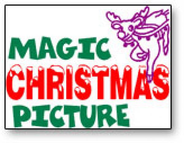 The magician displays a black and white outline drawing of a rooftop with reindeer pulling an empty sleigh that`s ready to land. A volunteer from the audience chooses several different crayons and writes his name on the sign in front of the house, then colors in the reindeer`s nose and adds a little smoke coming out of the chimney. The assistant then holds the picture while everyone says the magic words. When the picture is turned around, Santa is in the sleigh and it`s full of presents, complete with a Christmas tree and everything is colored in! The picture is then given to the child as a souvenir.